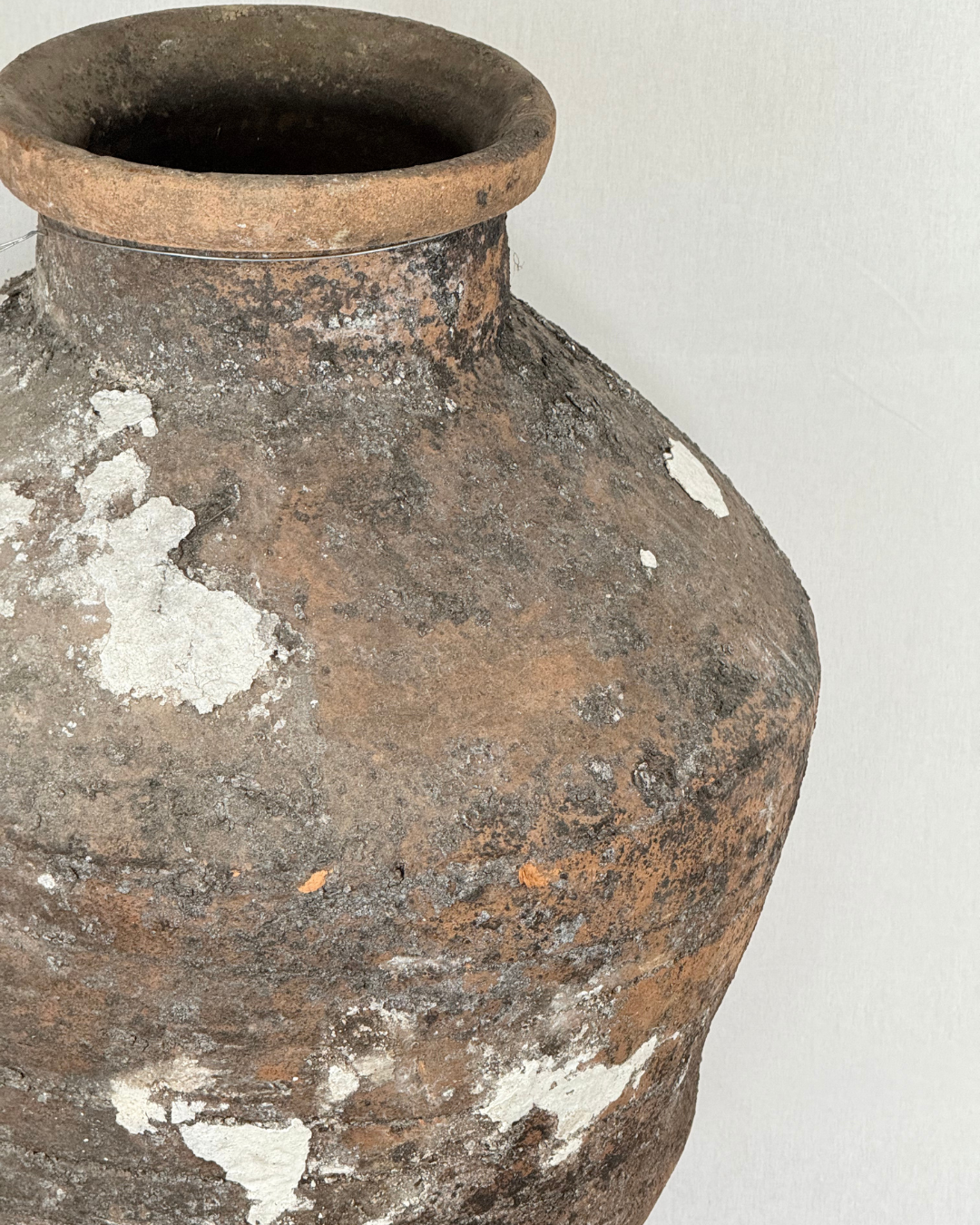 The Enez Pot is a large antique olive oil vessel from the 18th–19th century, originating from Enez, a historic coastal town on the border of Turkey and Greece. With its striking diamond shape and pointed base, the pot reflects Greek and Armenian influences, embodying the timeless spirit of the Mediterranean.