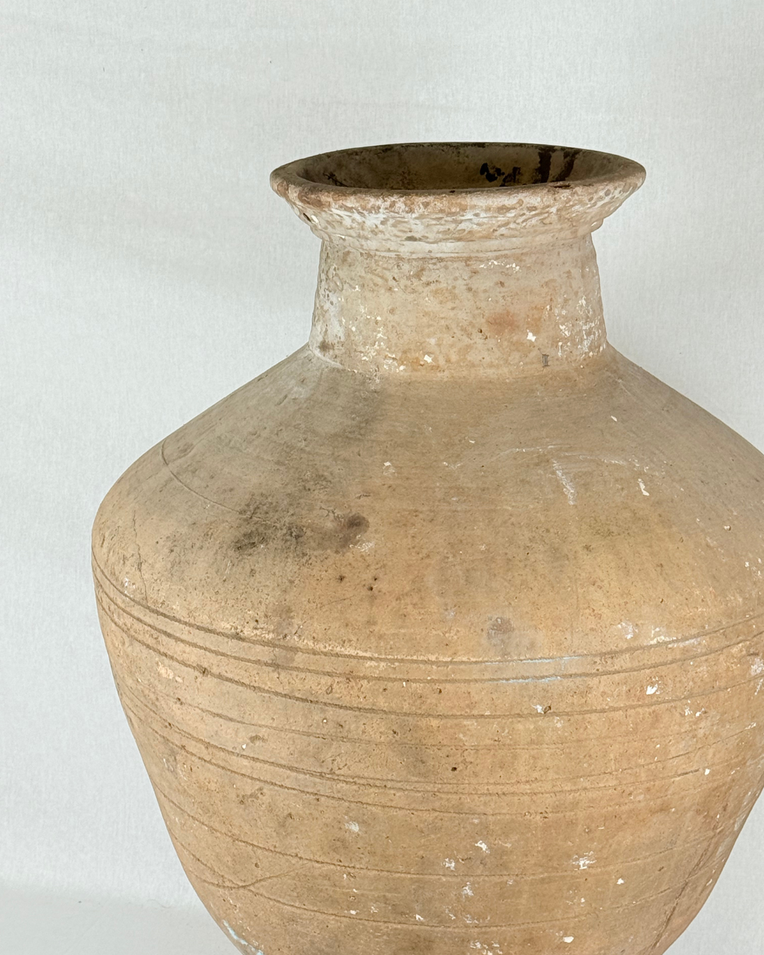 The Enez Pot is a large antique olive oil vessel from the 18th–19th century, originating from Enez, a historic coastal town on the border of Turkey and Greece. With its striking diamond shape and pointed base, the pot reflects Greek and Armenian influences, embodying the timeless spirit of the Mediterranean.