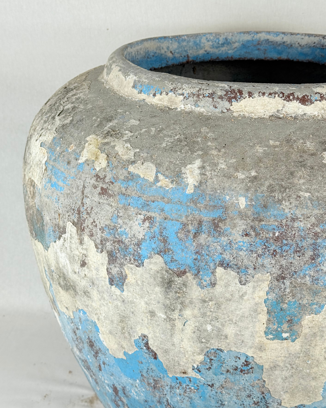 If you plan to use your pot outside, we offer to drill a drainage hole in the base — free of charge. This is highly recommended: antique pots are not fully frost-resistant. Standing water inside the pot can freeze, expand, and cause cracks during winter. A drainage hole allows excess water to escape, reducing the risk of frost damage.
